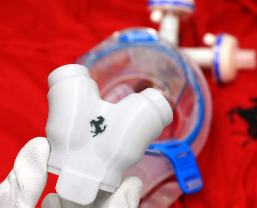La elaboración de las válvulas para los respiradores y accesorios para las mascarillas. Se van a realizar en la planta de Ferrari ubicada en Maranello, Italia.